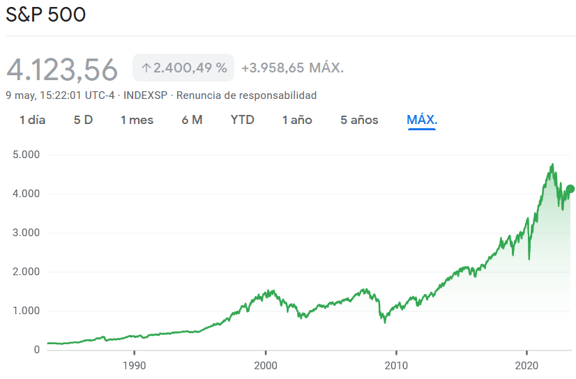 Fuente: Google Finance (S&P 500 desde 1983 al 2023)